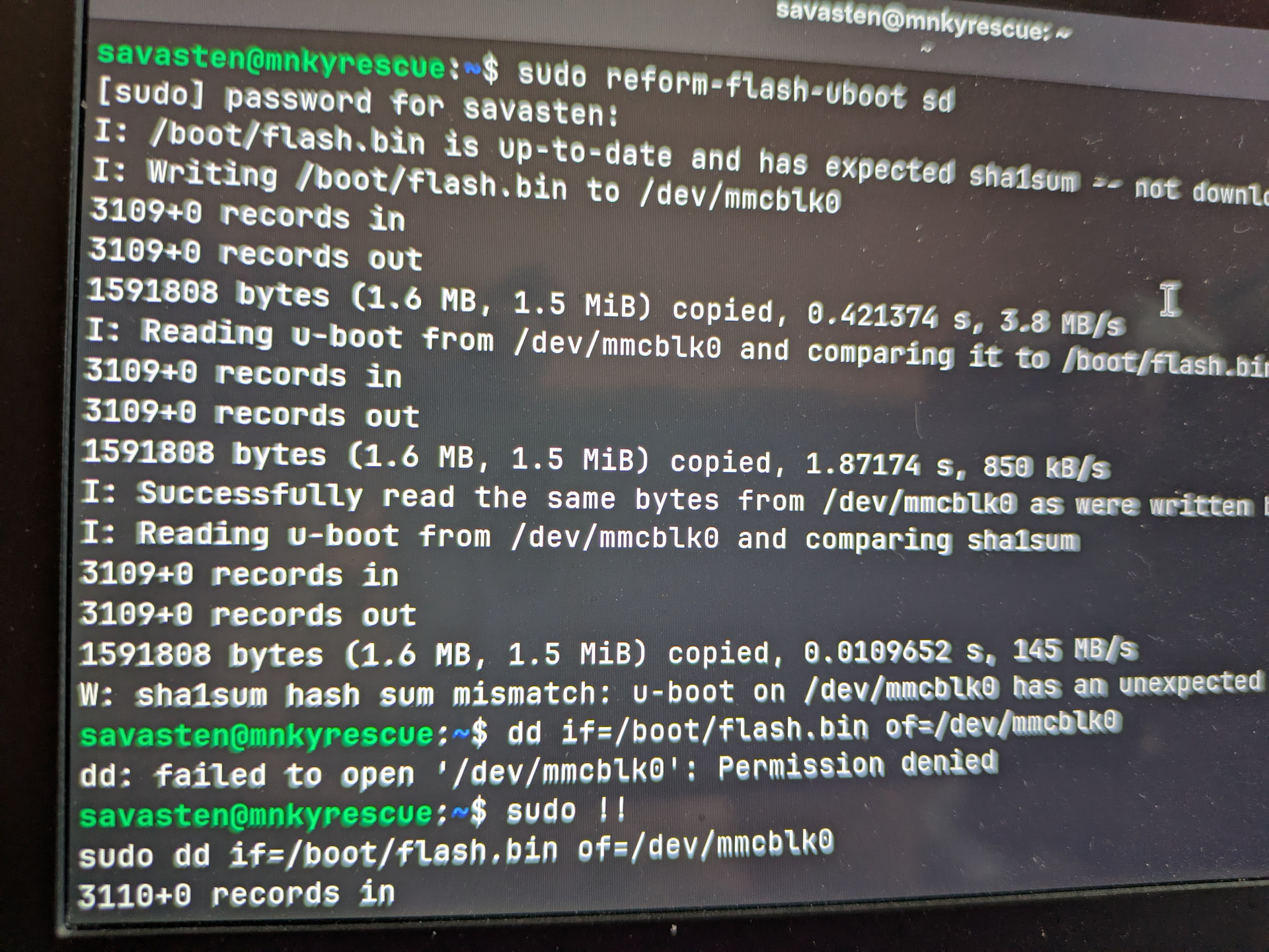 I tried updating the system and other misc things with no luck not understanding the kernel issue at the time. I ended up running reform-check and saw the messages about u-boot not being up to date.