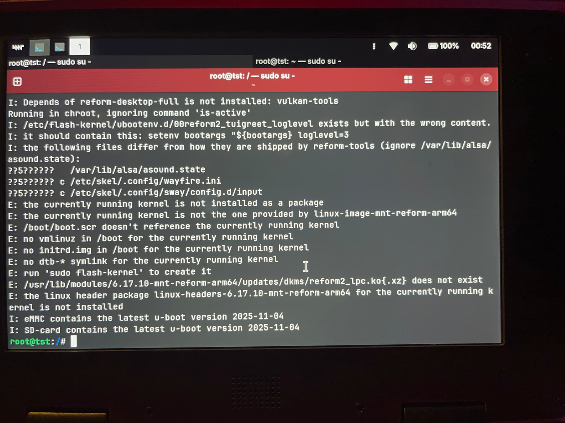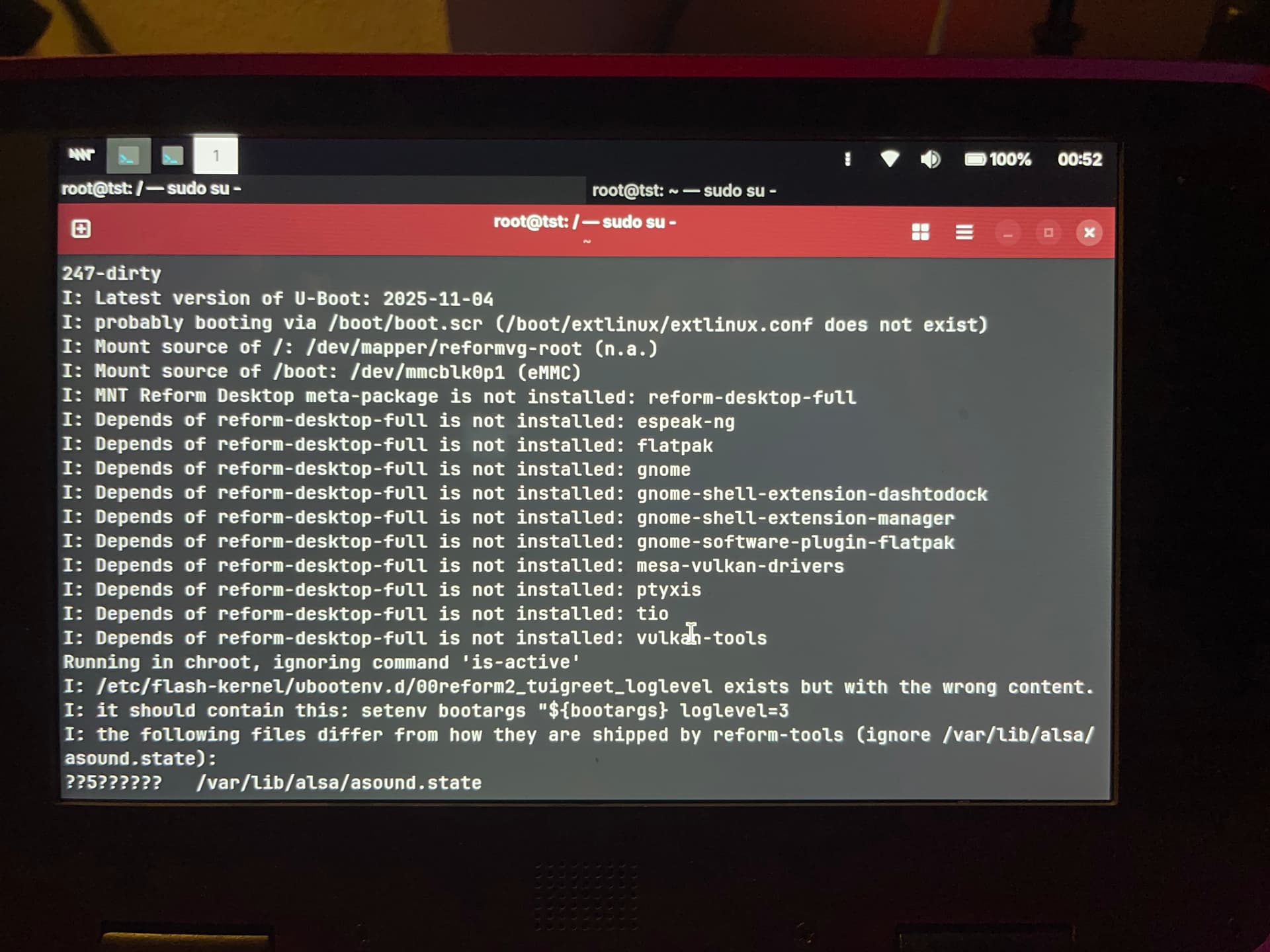 About the syntax error, I am pondering whether reform-check should run shellcheck on boot.scr. It would’ve printed this: