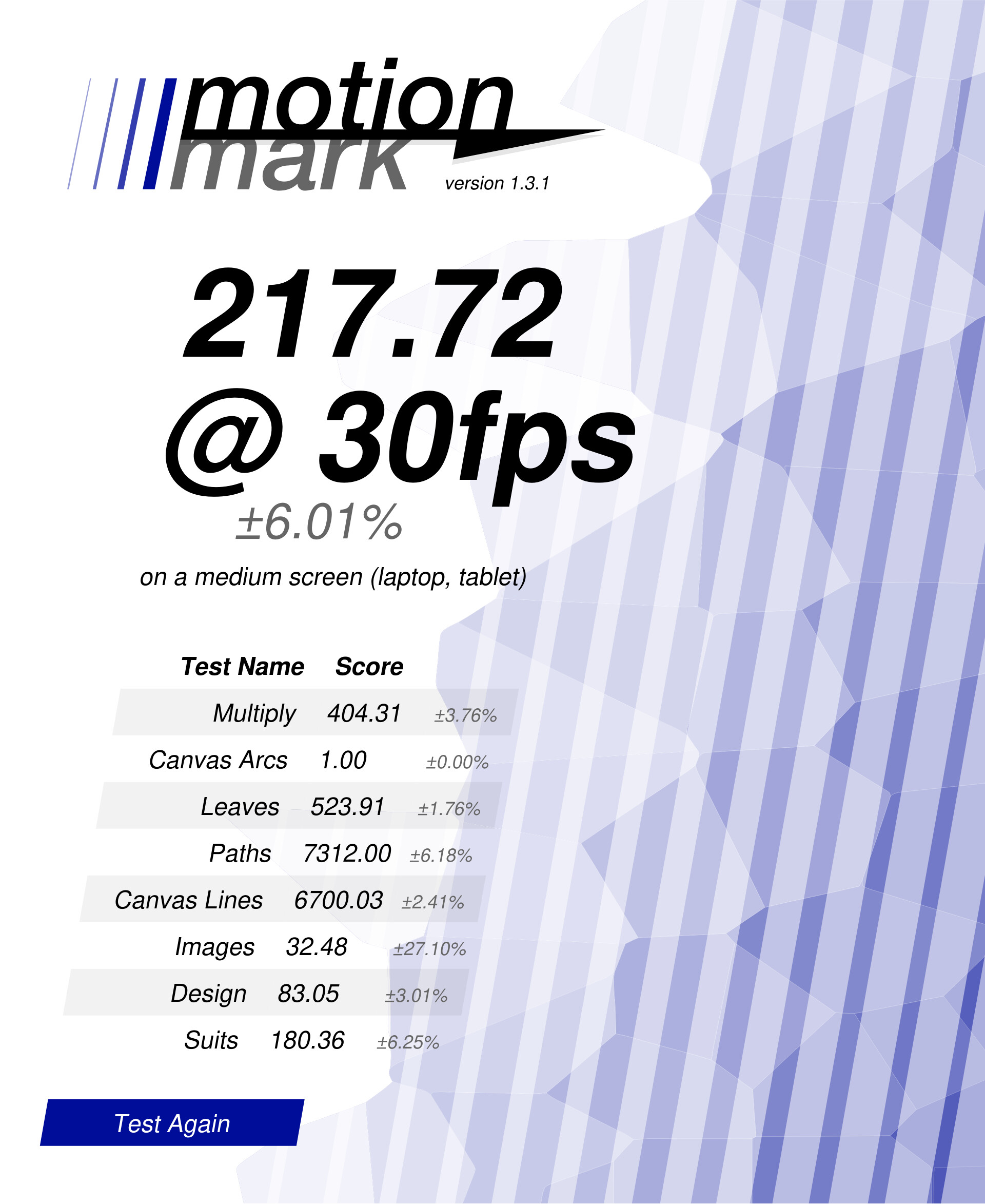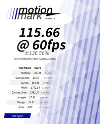 How is the score at 60 FPS? And note that my scores are of MotionMark 1.3, not MotionMark 1.3.1.