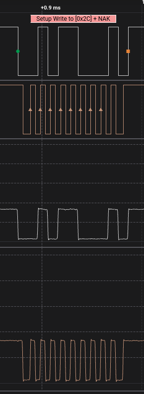 The bridge is NAK’ing after the A311D sends out its address (0x2C) on the I2C bus. Essentially, the chip is just not responding.