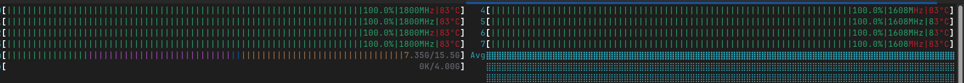 When compiling a bigger C/C++ project with all cores under heavy load for minutes the bigger cores reach up to 80°C (room is at 26° at the moment).